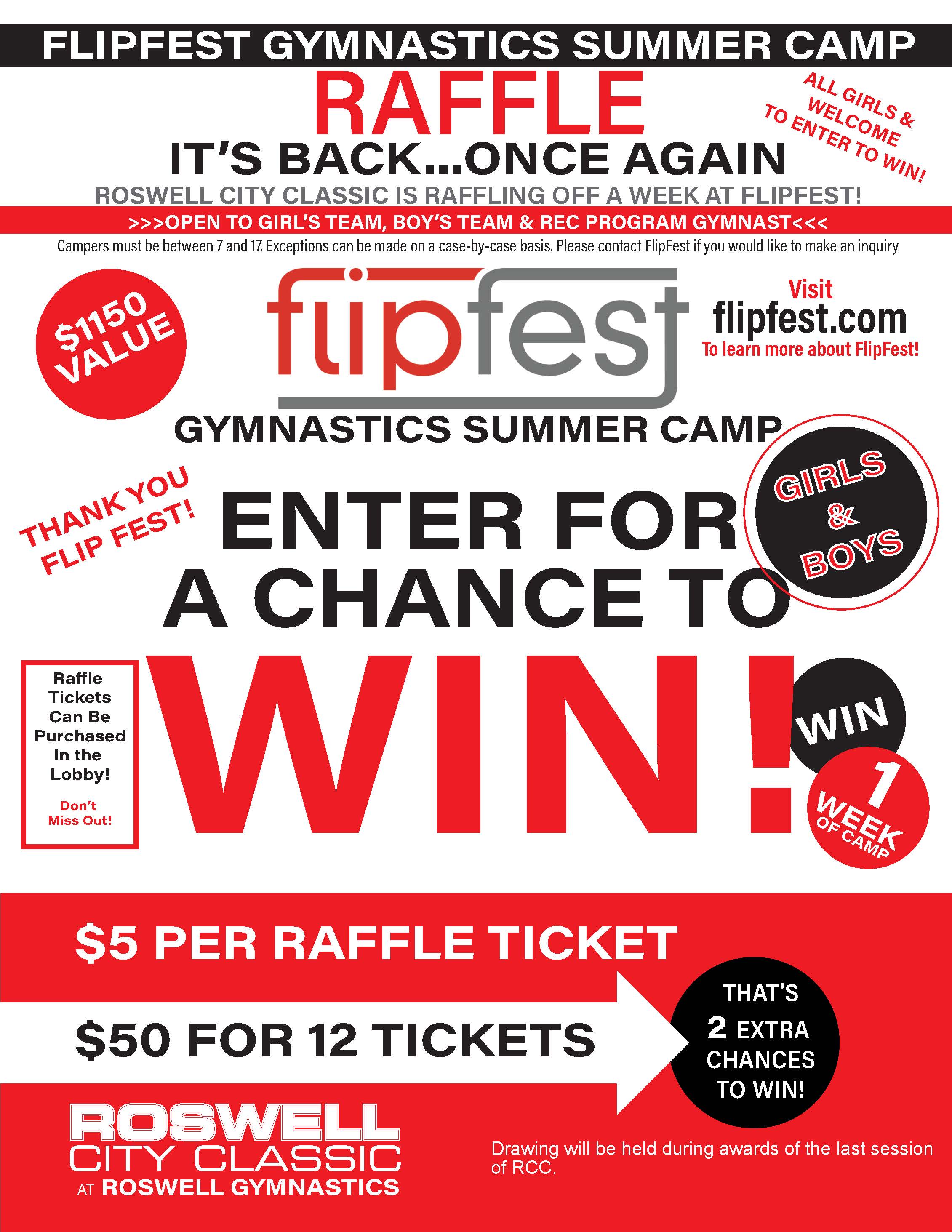 and are also selling raffle tickets for a week at FlipFest Summer Camp!