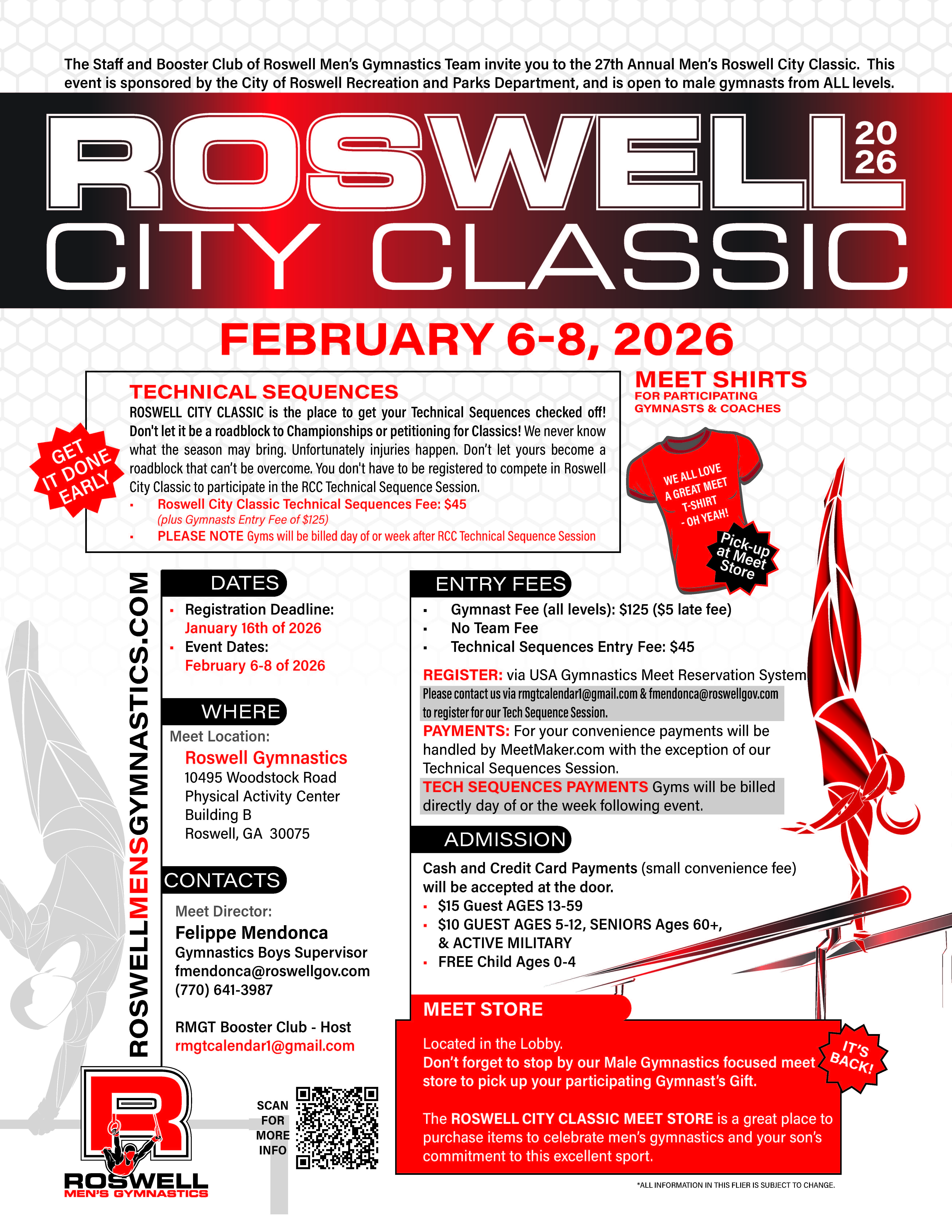The staff and booster club of Roswell Men's Gymnastics Team invites you to the
